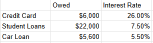 The first is looking at debt by interest rate. This is commonly referred to as the debt avalanche method.